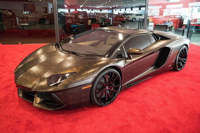 The website named gtspirit has displayed a customised model of Lamborghini Aventador. The most special thing about this sports coupe is that it dons a snake skin all over its body. Well, obviously it's not the original snake skin, but just a leather material that resembles the looks of a snake. The color flaunted by this car is somewhat a blend of brown and golden shades. It appears so sensuous that you won't be able to take your eyes off this luxury model. The use of chrome at some portions along with black colored wheels complement the looks even more.