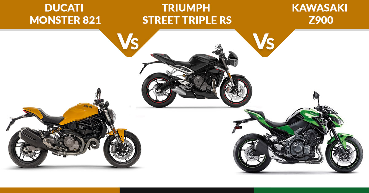 Ducati Monster 821 vs Triumph Street Triple RS vs Kawasaki Z900