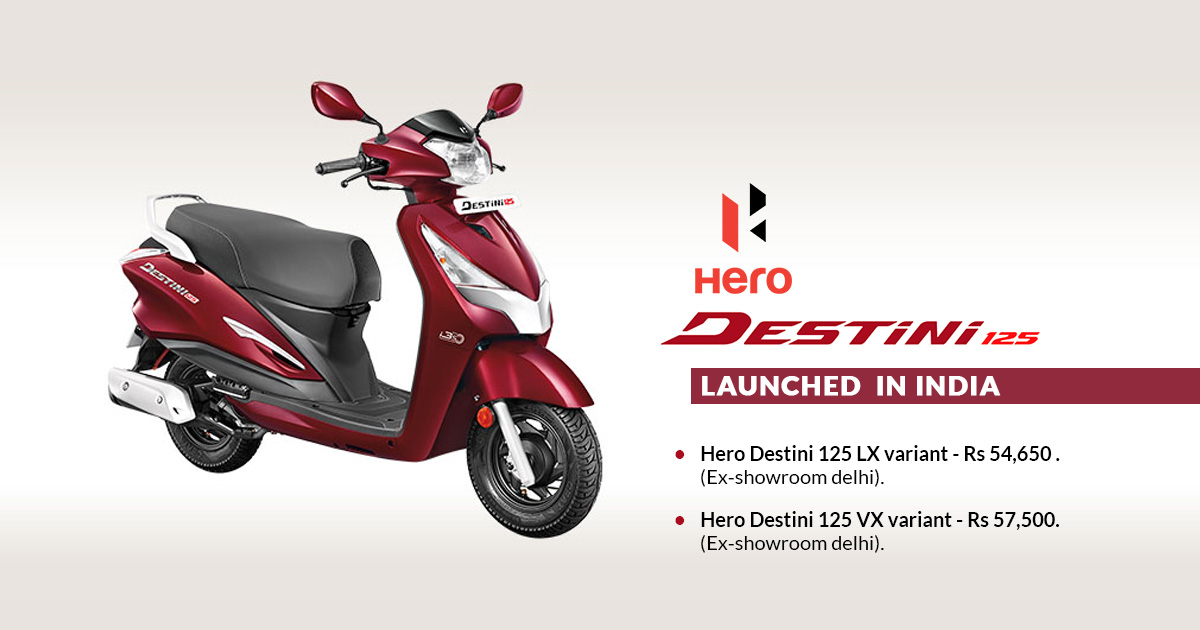 India’s largest motorcycle manufacturer, Hero MotoCorp has finally launched the Destini 125 in India. It is being offered in two variant- LX and VX, at the respective pricing of INR 54,650 and INR 57,500 (ex-showroom, Delhi).