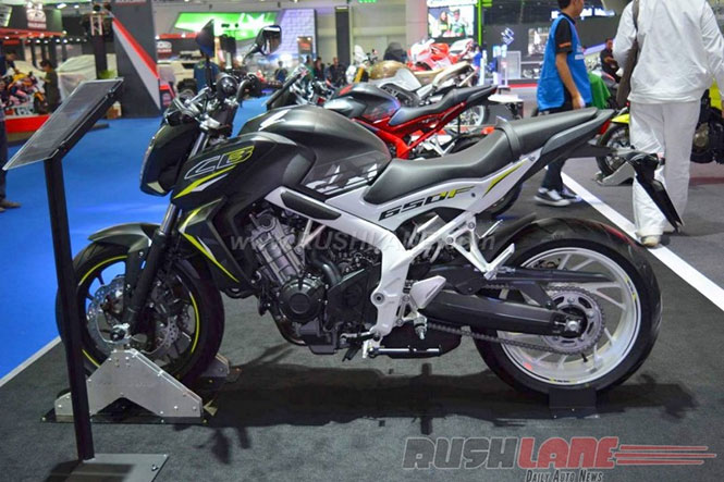 First, we talk about the Honda CB650F, the firm has revealed the bike in an iconic paint scheme-Grey and White, therefore the new livery is capturing a huge number of the younger audience. The white color is covered over the chassis and rear wheel, while the grey color is finished over the fuel tank and other body panel. The black color is finished over the front wheel and a racing stripe. The mix paint scheme enhances the appeal of the motorcycle at the event.