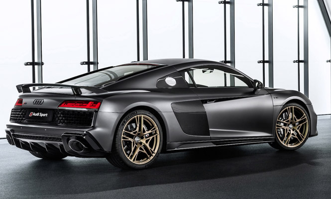 The key exterior design elements in the decennium edition Audi include a front spoiler, side sills, bronzed engine intake manifold, and glossy black painted diffuser. The mirror casings of the exterior door and side blades will also come with gloss carbon fibre finish.