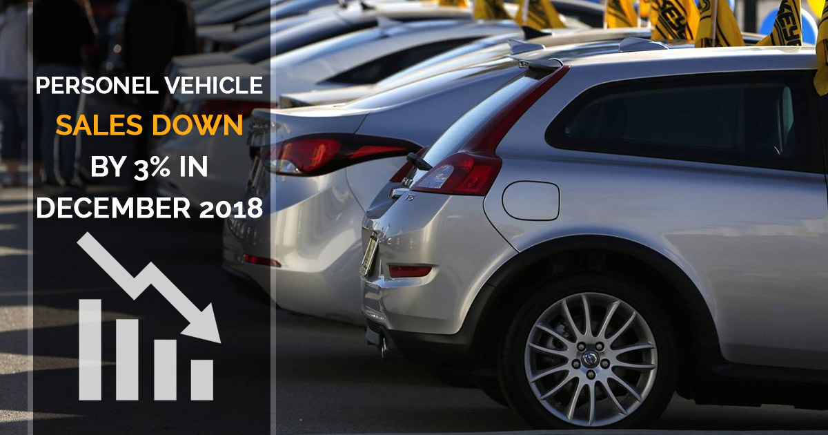 In December 2018, retail sales of passenger vehicles (PV) came down to 3% i.e. to 1,02,585 units from former year and the sales declined to 7% when compared to November 2018. The sales of the passenger vehicle (PV) reduced to 2% i.e. to 19,17,750 units in the April-December 2018 when compared to the April-December 2017 which was 19,65,630 units.