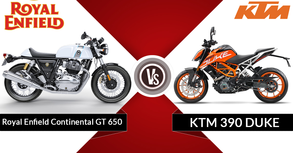 Royal Enfield Continental GT 650 is the newest motorcycle in the company’s Indian lineup with the most powerful engine ever in production. It is the replacement of older Continental GT in the current lineup. In its segment, the Continental GT 650 seeks competition with Kawasaki Z650 and Harley-Davidson Street 750. However, the factors such as its pricing and power output make the GT 650 stand against the KTM Duke 390 besides belonging to completely different bike category. Have a look at how these rivals compete for each other on paper specs comparison.
