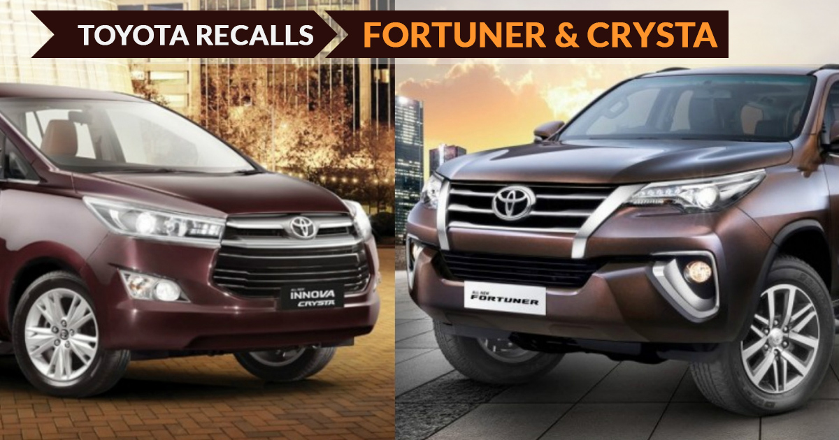 Toyota has recalled the Fortuner SUV and Innova Crysta voluntarily in order to calibrate and identify if there is any problem in fuel hose routing in certain models in India.