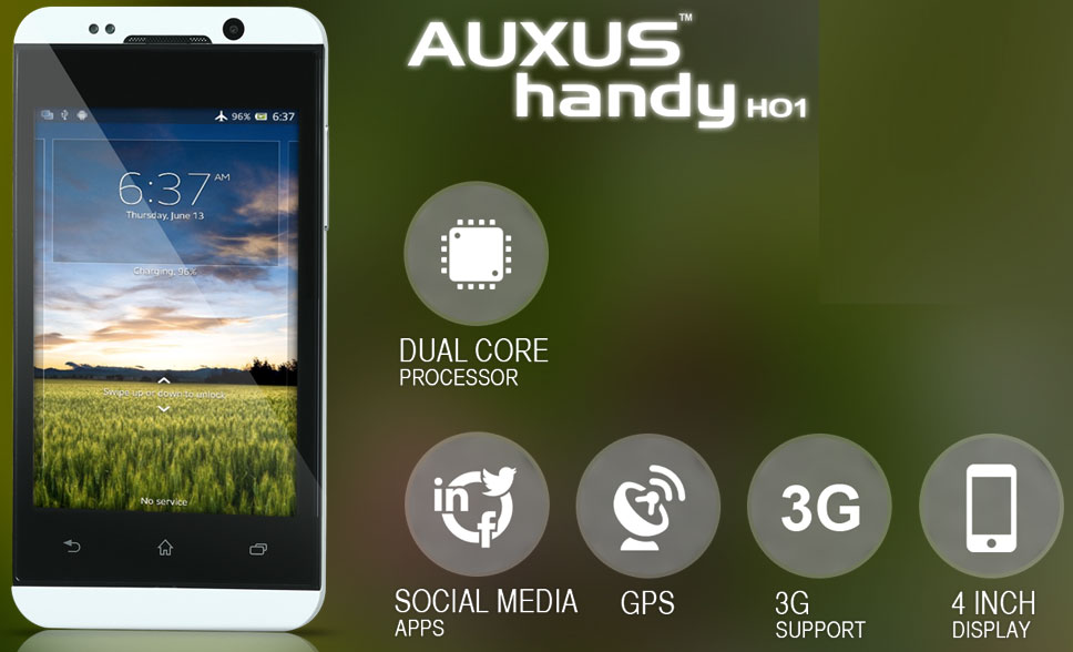 Auxus Handy H01 gets 4-inch IPS display and embedded with dual-core MediaTek MT6572 processor which is clocked at 1.3 GHz. It has Mali 400 for its GPU. It comes loaded with 512MB of RAM along with 2GB in-built storage. It runs on Android 4.2 Jelly Bean Operating System. Powering the device, it has 1800mAh battery. The handset is crafted with microSD card slot which will be able to store data upto 32GB. In the list of connectivity options, it includes the names of 3G, Bluetooth 4.0, GPS/A-GPS and WiFi.